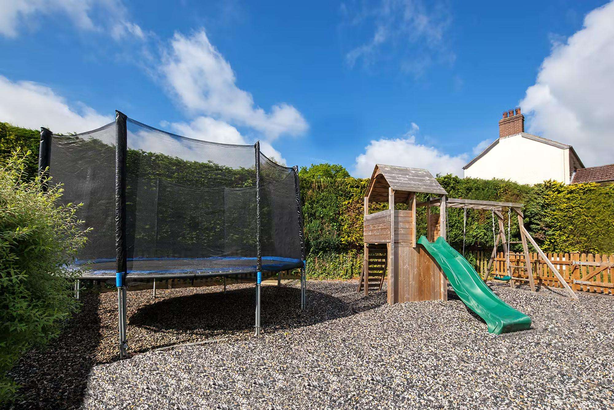 Harbrook Grange - A climbing frame, swing and slide - plus a trampoline. Imagine the happy shrieks! -