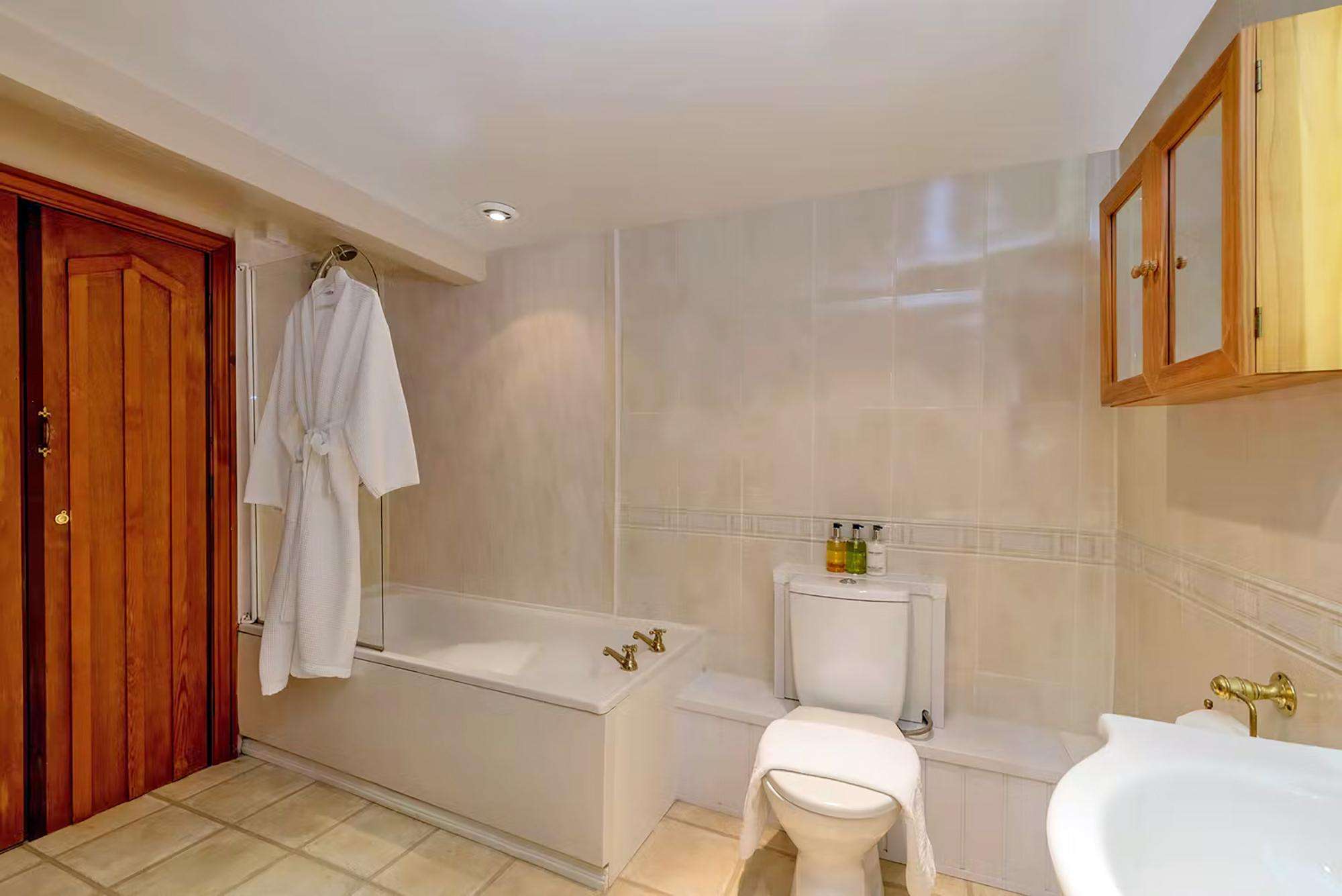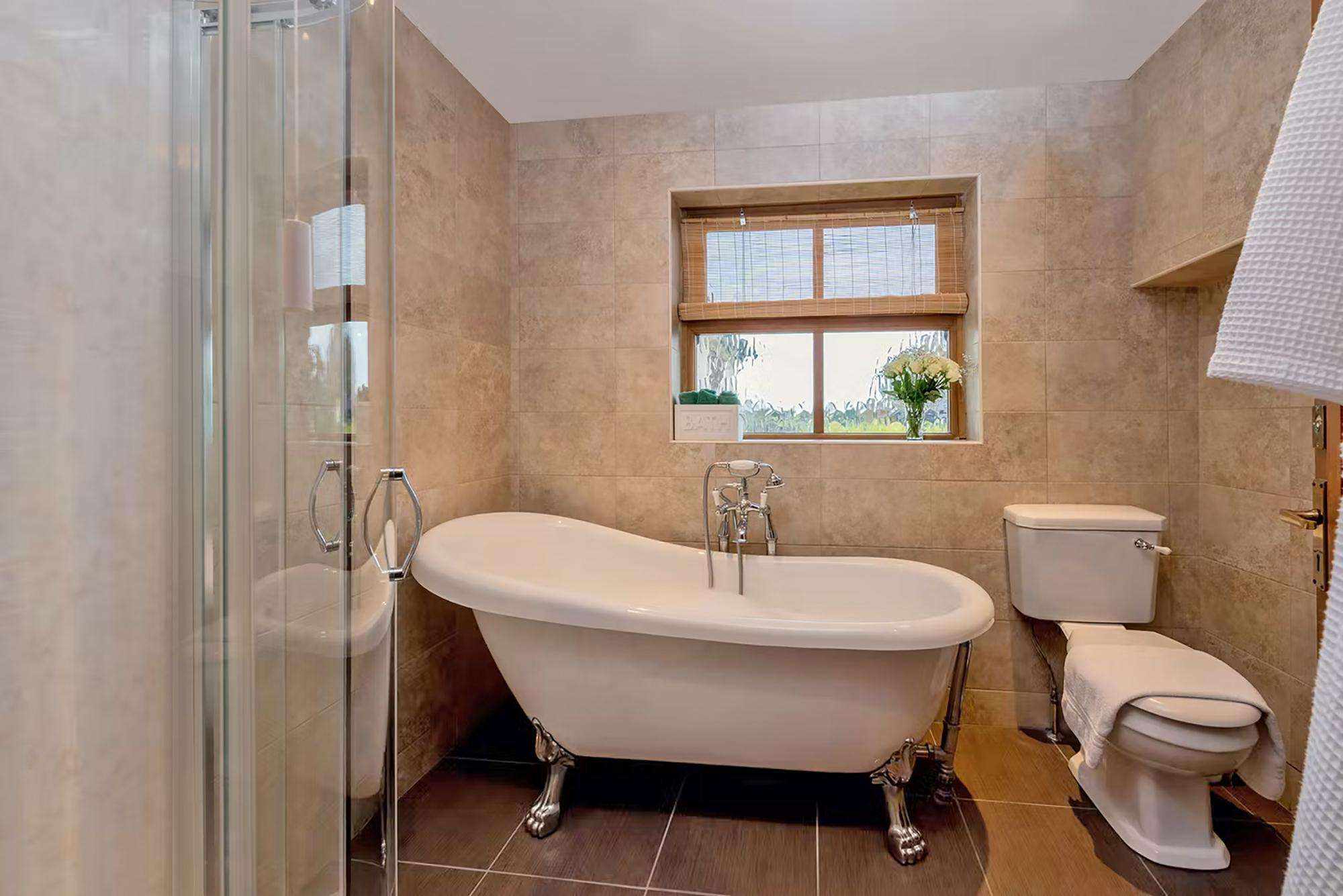 Harbrook Grange - The modern family bathroom has a free standing bath